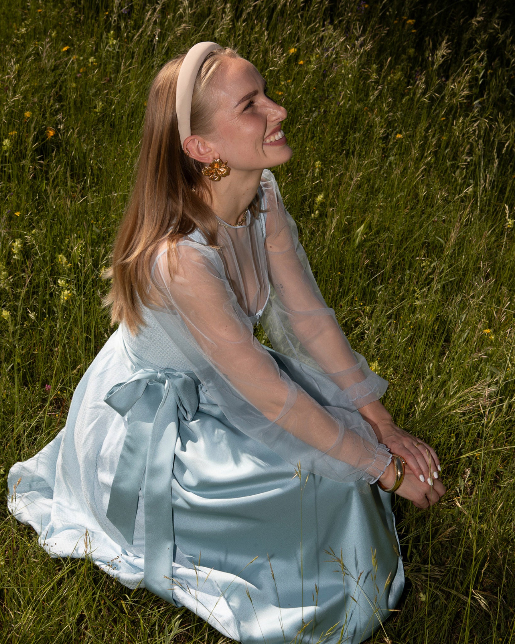 Luftig, fließend, sommerlich – das Zusammenspiel aus dem himmelblauen Dirndl Marlies und der federleichten Bluse Mathilda wirkt wie aus einem Guss. Die zarten Töne und feinen Stoffe schaffen einen ruhigen, harmonischen Look. Schlicht und stilvoll. Charmant und feminin. Für unvergessliche Tage mit Leichtigkeit.